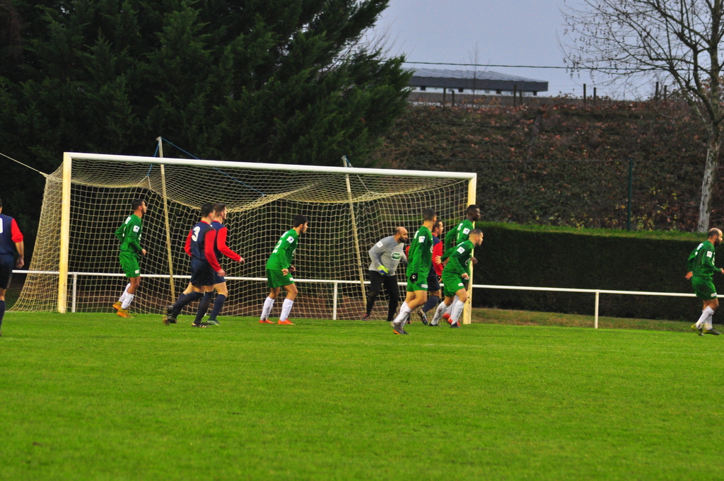 L'équipe première (2 ème) recevait le leader Nantes Bellevue pour un match au sommet. Rapidement les Nantais ouvrent le score (7 ème). Alors que l'on se dirigeait tranquillement vers la mi temps, une faute de Junysson provoque à la surprise générale une incompréhensible échauffourée . L'arbitre décide donc d'exclure un joueur de chaque camps mais notre équipe refuse de reprendre la partie. Finalement, le match reprend après 40 minutes d'interruption. Nico (52 ème) et Greg (69 ème) permettent à nos joueurs de renverser la vapeur, et de remporter une victoire plus le strapontin de leader. Mention spéciale à Jordan qui a stoppé un pénalty à la 85 ème (le 2 ème en 2 matchs !) et préservé la victoire ! Un beau succès gaché par des gestes que l'on ne souhaite plus revoir sur un terrain de football.